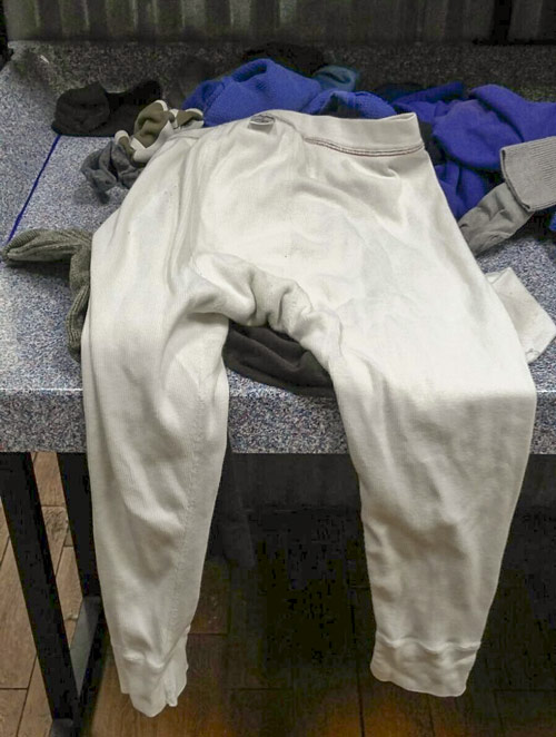 rooting around in a large duffel bag. He emerged with several